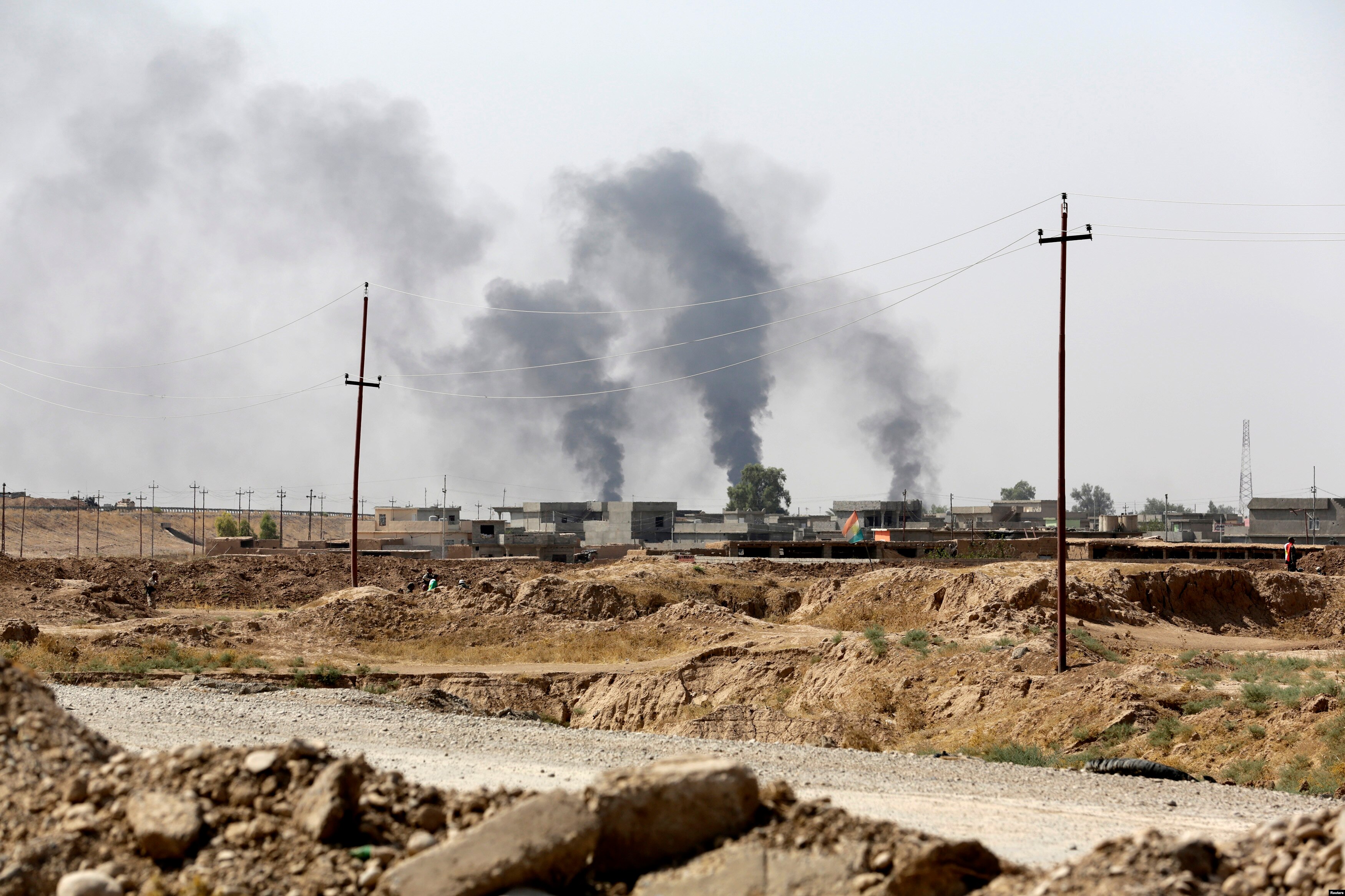 Iraqi troops, with support from Kurdish fighters and Shi'ite militiamen, also surrounded the nearby town of Yankaja and were pounding it with artillery and machinegun fire as they fought to retake it from militants.
